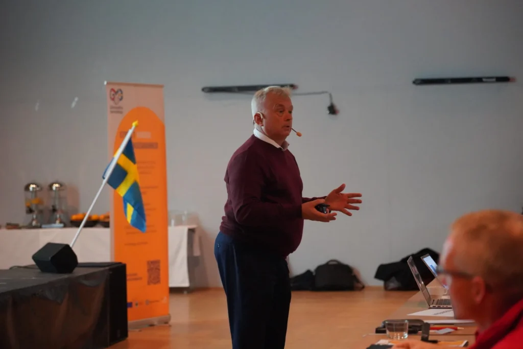 Arne Norevik, tjenesteleder ved den norsk-svenske politistasjonen i Eda og Eidskog, fortalte om praktiske erfaringer med grenseoverskridende politisamarbeid – et konkret eksempel på hvordan felles innsats kan skape trygghet for innbyggere på begge sider av grensen.